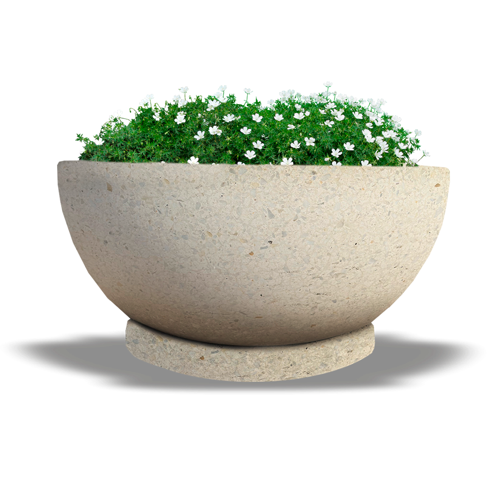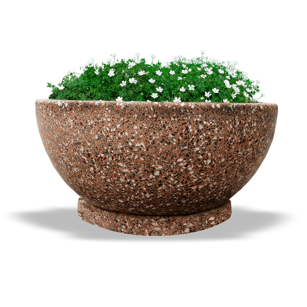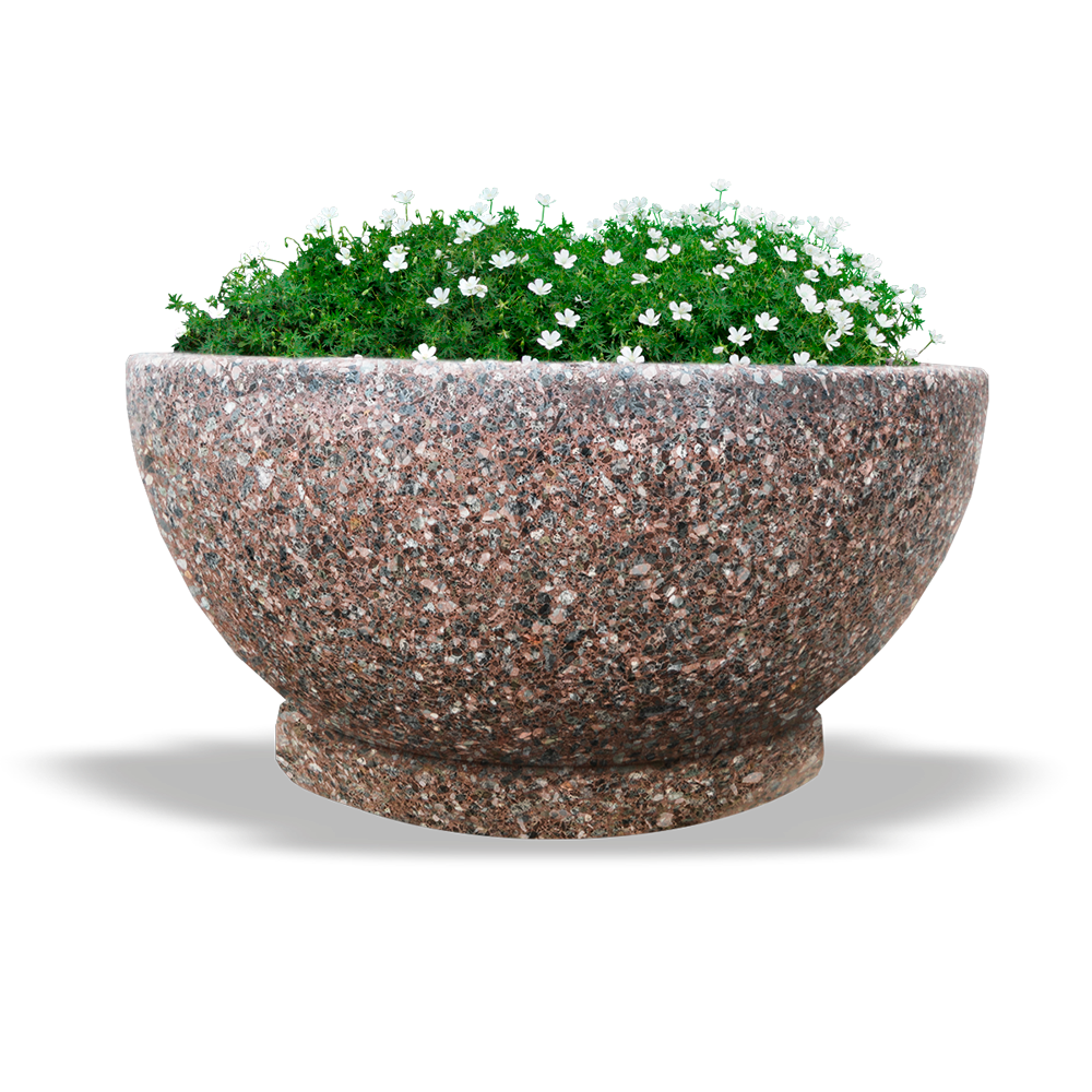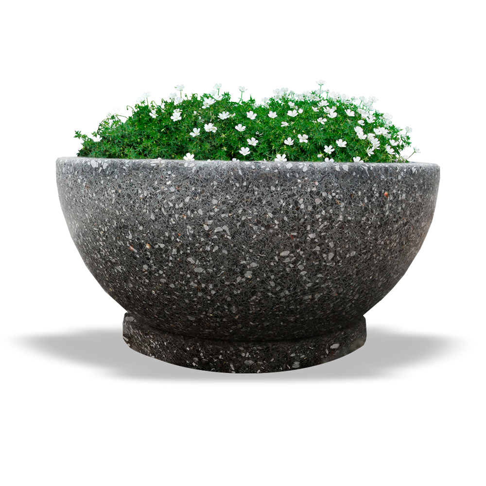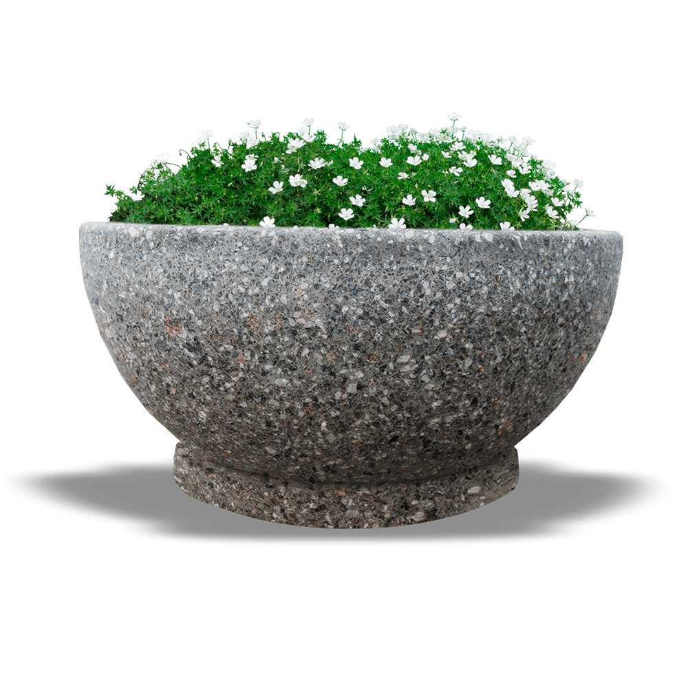 Цветочный вазон, модель "Эстате", выполнен из качественного архитектурного бетона с добавлением каменной крошки. С помощью автоматической шлифовки достигается идеально гладкая поверхность, которая подчеркивает красоту природного камня.